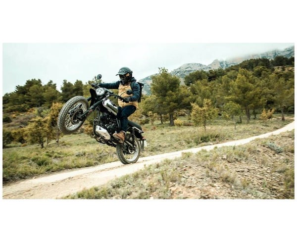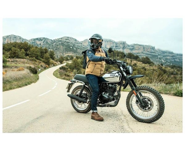 Mit seinem hohen Vorderradkotflügel und dem starken Unterbodenschutz ist die Felsberg 125 XC für die Abenteuer im Gelände gerüstet. Standardmässig kommt die Felsberg 125 XC mit anpassbaren Stossdämpfern, LED-Tagfahrlicht und LED-Blinkleuchten, einem digitalen Tachometer sowie elektronischer Treibstoffeinspritzung.