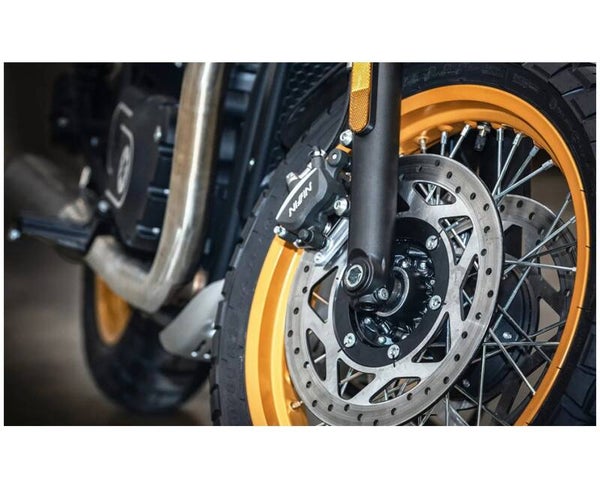 Um die Cromwell auch wieder einzufangen, verzögern zwei radial befestigte 2-Kolben-Bremszangen mit Belägen von Nissin auf zwei 310mm-Bremsscheiben. Hinten arbeitet eine Einkolbenbremszange auf einer 260mm-Bremsscheibe. An Front und Heck verhindert das Bosch-ABS ein Blockieren der Räder.