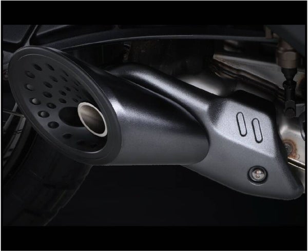 Die diskret unter dem Motorrad angebrachte Auspuffanlage aus Edelstahl ist auf eine lange Lebensdauer ausgelegt. Das Auspuffrohr ist mit einer Cool-Touch-Abdeckung umhüllt, welche für einen optimalen Wärmeschutz sorgt.