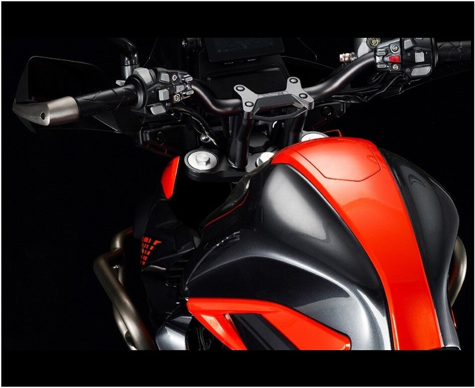 Der neue Handschutz hat eine größere Fläche und in Kombination mit der neuen geschmiedeten Halterung aus Aluminiumlegierung ist der Windschutzscheibeneffekt viel besser. Hochwertige Verarbeitung und perfekt in das Design des Motorrades integriert - typisch Zontes.