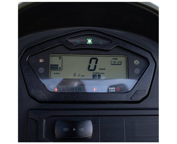 Der U-Wolf von Loncin bietet ein grosszügiges Infortainment System mit bereits integrierten Lautsprecherboxen und einem Bluetooth®-Radio. Der 7"-Zoll Bordcomputer präsentiert dem Fahrer alle nützlichen Informationen über den ATV, inklusive Navigationssystem-Anbindung.