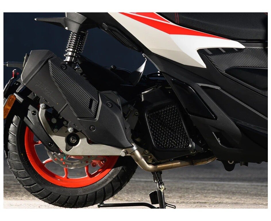 Der Aprilia SR GT Sport zeichnet sich durch exklusive Details aus, die seinen sportlichen Charakter unterstreichen. Der vordere Fender, der Haltegriff für den Beifahrer und Spoiler in Schwarz passen zur Farbe des vorderen Schildes, das sich bis zum Heck in einer Linie fortführt und so eine dynamische Optik erzeugt.