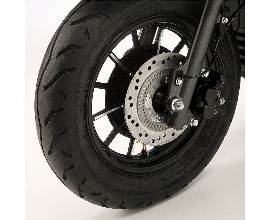 Der klassische und zeitlose Bordcomputer verbindet moderne Einheiten mit dem angelehnten Design der 1960er Jahren. Die Scheibenbremsen mit ABS-System garantieren Sicherheit und sorgen für ordentlich Grip auf den Strassen.