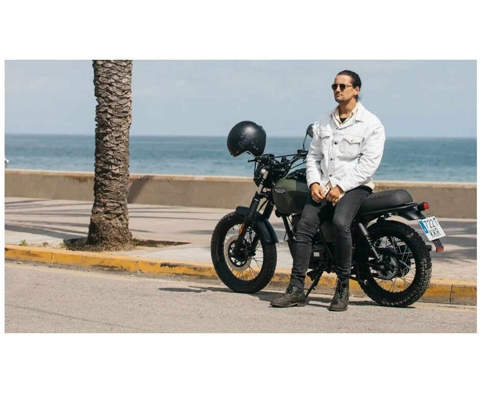 Kaum ein Abenteuer ist zu wild - die Brixton Felsberg 125 ist bereit, jeden Pfad zu erobern. Mit ihrem robusten Scrambler-Look, inklusive Stollenbereifung, Frontscheinwerfergitter und wilder Farbpalette von "Cargo-Green" bis "Charly-Brown", ruft sie lauft: "Nichts hält mich auf!"