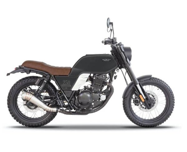 Mit ihrem kernigen Design, dem robusten Rahmen und den markanten Upside‑Down‑Gabeln zeigt die Brixton Felsberg 250 klar, dass sie kein gewöhnlicher Strassenbegleiter ist. Die kompakte Karosserie wirkt entschlossen und urban – perfekt für Fahrerinnen und Fahrer, die auffallen und staunen wollen.