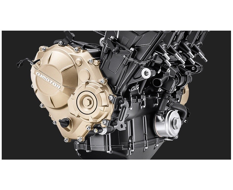 Angetrieben wird die QJMotor SRK 800RR von einem selbst entwickelten 778 cm³ Reihenvierzylindermotor mit 16 Ventilen, der kompromisslose Sportlichkeit verkörpert. Mit einer präzisen Bohrung von 67 mm und einem Hub von 55 mm entfaltet das Aggregat eine eindrucksvolle Leistung von 95 PS (70 kW) bei 10’000 U/min sowie ein maximales Drehmoment von 75 Nm. Das Ergebnis ist ein hochdrehender, souveräner Antrieb mit explosiver Leistungsentfaltung und beeindruckender Laufruhe.