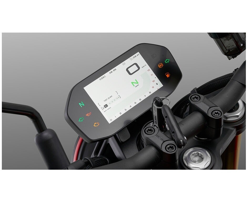 Die QJMotor SRK 800 überzeugt bereits in der Serienausstattung mit fortschrittlicher Fahrdynamik. Über die frei wählbaren Fahrmodi passt du das Motorrad jederzeit deinem Stil und den Straßenbedingungen an: Eco steht für komfortables, effizientes Gleiten, während Sport die volle Leistung entfesselt und jede Gasbewegung in pure Dynamik verwandelt. Der Quickshifter ermöglicht blitzschnelle, kupplungslose Gangwechsel und sorgt für noch direkteres Ansprechverhalten. Für lange Touren und entspanntes Reisen ist der Tempomat ein praktischer Begleiter, der das Halten der gewünschten Geschwindigkeit mühelos übernimmt – für maximale Kontrolle, Komfort und Fahrspaß auf jeder Strecke.