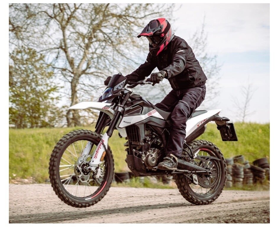 Praktisch und dennoch leistungsstark: Mit einem Gewicht von etwa 124 kg fahrfertig, einer Bodenfreiheit von ca. 300 mm und einem Tankvolumen von rund 7,2 Liter erlebst du Reichweite und Wendigkeit in einem. Die Höchstgeschwindigkeit liegt bei etwa 99‑100 km/h – ideal, um auch auf der Strasse sicher unterwegs zu sein.