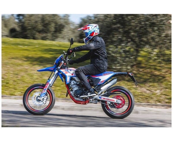 Die 125R von Betamotor trägt stolz das Dekor der Motocross-Weltmeisterschaft und bringt damit echten Rennsport direkt auf die Straße. Mit ihrem markanten Auftritt ziehst du nicht nur alle Blicke auf dich – du setzt ein klares Statement für Authentizität, Performance und Racing-Leidenschaft. Wer die 125R fährt, zeigt nicht nur Stil, sondern auch Charakter: das Verständnis für eine echte Super-Motard-Maschine und die Werte, für die sie steht – Dynamik, Kontrolle und kompromisslosen Fahrspaß.